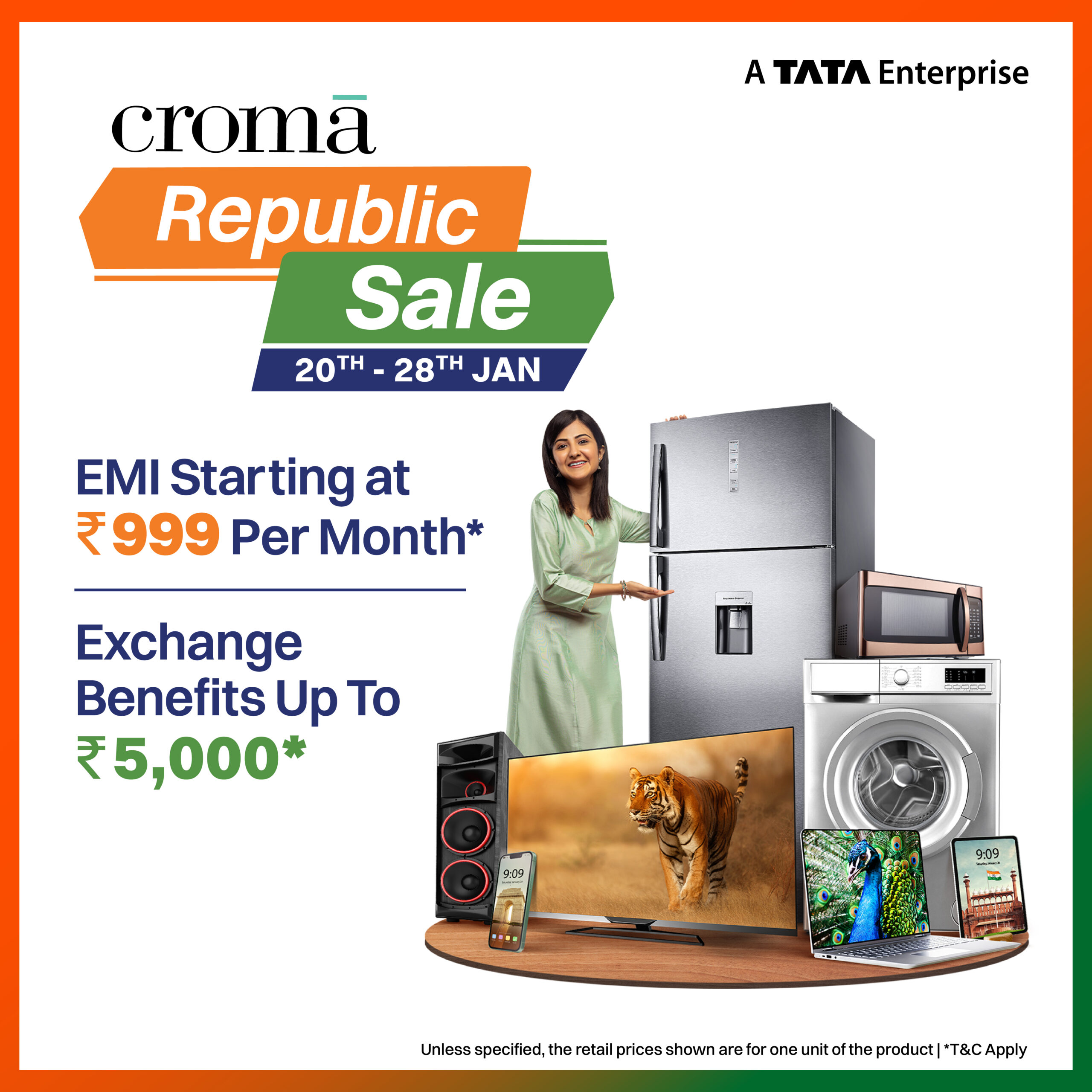 କ୍ରୋମା ପକ୍ଷରୁ ଟିଭି, ରେଫ୍ରିଜରେଟର, ଏସି, ୱାସିଂ ମେସିନ, ମୋବାଇଲ୍ ଫୋନ୍, ଲାପ୍ଟପ୍ ଉପରେ ଶ୍ରେଷ୍ଠ ଡିଲ୍ ସହ ସାଧାରଣତନ୍ତ୍ର ଦିବସ ପାଳନ