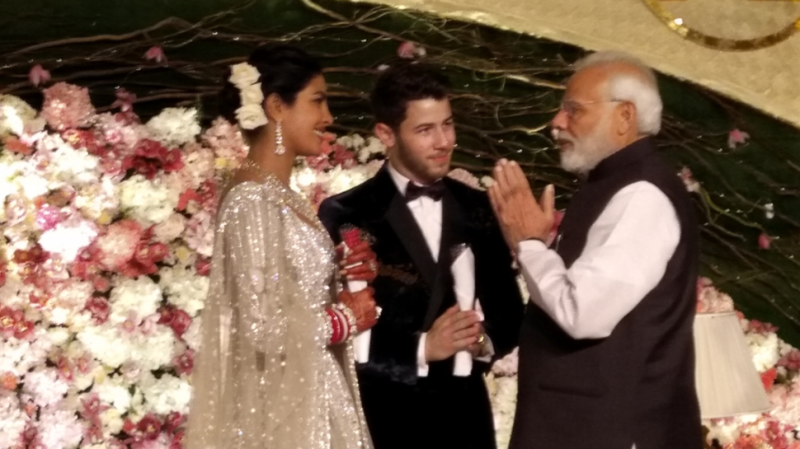 ଦିଲ୍ଲୀର ପାଂଚ ତାରକା ହୋଟେଲ୍ ତାଜରେ ପ୍ରିୟଙ୍କା ଓ ନିକଙ୍କର ଗତକାଲି ରିସେପନ୍ସ ପାର୍ଟି ଥିଲା । ଏଥିରେ ସାମିଲ ହୋଇ ମୋଦି ନବ ଦଂପତିଙ୍କ ଆଶିର୍ବାଦ ଦେବା ସହ ଫଟୋ ମଧ୍ୟ ଉଠାଇଥିଲେ । ରିସେପନ୍ସ ପାର୍ଟିରେ ପ୍ରିୟଙ୍କା ଓ ନିକ୍ ଉଭୟ ଇଣ୍ଡିୟାନ ଆଉଟଫିଟ୍ରେ ନଜର ଆସିଥିଲେ । ପ୍ରିୟଙ୍କା ସ୍ଲିଭର ଲେହେଙ୍ଗା ସହ ମ୍ୟାଚିଙ୍ଗ ଜୁଏଲାରୀ ପିନ୍ଧିଥିବା ବେଳେ ନିକ୍ ଜୋନସ୍ ବ୍ଲାକ ଆଉଟପିଟ୍ରେ ବେଶ୍ ସୁନ୍ଦର ଦିଶୁଥିଲେ । ରାଜସ୍ଥାନର ଯୋଧପୁରରେ ବିବାହ ପରେ ଦିଲ୍ଲୀରେ ପରିବାର ଓ ସମ୍ପର୍କୀୟଙ୍କ ରିସେପନ୍ସ ପାର୍ଟିର ଆୟୋଜନ କରାଯାଇଥିଲା