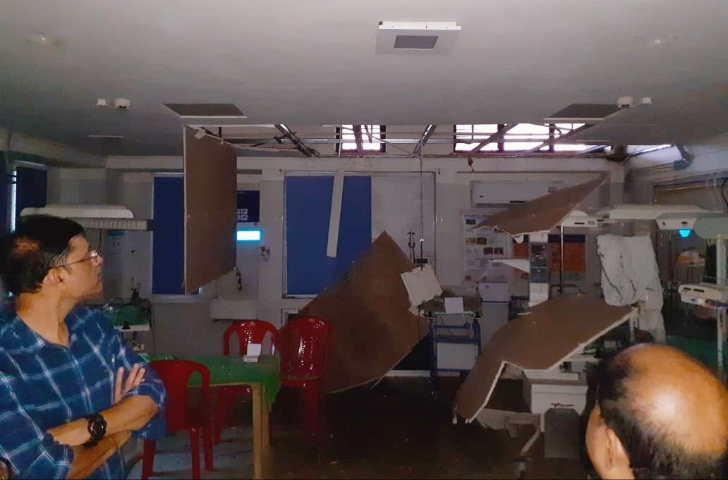 ପ୍ରଚଣ୍ଡ ପବନରେ ଏସଏନସିୟୁଟି ବିଭାଗର ସିଲିଂ ଗୁଡିକ ଭାଙ୍ଗିରୁଜି ଯାଇଥିଲା । ବିଦ୍ୟୁତ ସରଞ୍ଜାମ ଓ ସିଲିଂ ତଳେ ପଡିବା ଆରମ୍ଭ କରିବା ମାତ୍ରେ ନବଜାତ ଶିଶୁଙ୍କ ସୁରକ୍ଷା ପାଇଁ ସେଠାରେ ଉପସ୍ଥିତ କର୍ମଚାରୀମାନେ ନିଜ ଜୀବନକୁ ବାଜି ଲଗାଇ ସମସ୍ତ ଶିଶୁଙ୍କୁ କୋଳେଇ ନେଇ ଜାବୁଡି ଧରିଥିଲେ । ଏଥିସହ ଆଉକିଛି କର୍ମଚାରୀ ତୁରନ୍ତ ଇନକ୍ୟୁବେଟରରୁ ବିଦ୍ୟୁତ ସଂଯୋଗ କାଟିଦେଇଥିଲେ । ଫଳରେ ନବଜାତ ଶିଶୁମାନେ ରକ୍ଷା ପାଇଯାଇଥିଲେ ।