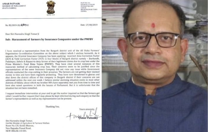 ବରଗଡ ଜିଲ୍ଲା ସର୍ବଭାରତୀୟ ଚାଷୀ ସମନ୍ବୟ ସମିତି ପକ୍ଷରୁ ଏକ ଅଭିଯୋଗ ପାଇବା ପରେ ଅମର ପଟ୍ଟନାୟକ କେନ୍ଦ୍ରମନ୍ତ୍ରୀଙ୍କ ଦୃଷ୍ଟି ଆକର୍ଷଣ କରିଛନ୍ତି । ପ୍ରଧାନମନ୍ତ୍ରୀ ଫସଲ ବିମା ଯୋଜନାରେ ଇନସ୍ୟୁରାନ୍ସ କମ୍ପାନୀ ଚାଷ ଜମିର ପରିମାଣ ଓ ଉତ୍ପାଦନକୁ ନେଇ ଭୁଲ ତଥ୍ୟ ପ୍ରଦାନ କରିଛନ୍ତି । ଜିଲ୍ଲାର ପଦ୍ମପୁର, ସୋହେଲା, ବିଜେପୁର ଓ ଝରବନ୍ଧ ଅଂଚଳ ଚାଷୀମାନେ ଅଭିଯୋଗ କରିଛନ୍ତି ଯେ, କମ୍ପାନୀ ଚାଷୀଙ୍କୁ ସେମାନଙ୍କ ଫସଲ ନଷ୍ଟ ହେବା ପରେ ବି ପ୍ରଧାନମନ୍ତ୍ରୀ ଫସଲ ବିମା ଯୋଜନାରେ ସେମାନଙ୍କୁ ନାର୍ଯ୍ୟ ଅର୍ଥ ପ୍ରଦାନ କରୁନାହିଁ ।