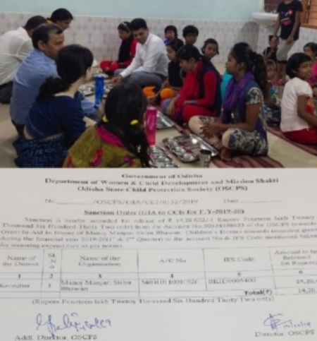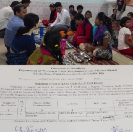 ଭୁବନେଶ୍ବର () କେନ୍ଦୁଝରର ମନୋଜ ମଂଜରୀ ଶିଶୁ ଭବନକୁ ଉନ୍ନୟନ କମିଶନର ସୁରେଶ ମହାପାତ୍ର, 5-ଟି ସଚିବ ଭି.କେ. ପାଣ୍ଡିଆନ ଓ ଜାତୀୟ ସ୍ବାସ୍ଥ୍ୟ ମିଶନର ନିର୍ଦ୍ଦେଶିକା ଶାଳିନୀ ପଣ୍ଡିତଙ୍କ ଗସ୍ତ ଓ ସେଠାରେ ଶିଶୁଙ୍କ ସହ ଆଲୋଚନାର ଗୋଟିଏ ଦିନ ପରେ ଏହି ଅନାଥଆଶ୍ରମକୁ ରାଜ୍ୟ ସରକାର14ଲକ୍ଷ 20 ହଜାର 632 ଟଙ୍କା ଅନୁଦାନ ଦିଆଯାଇଛି । ଚଳିତ ଆର୍ଥିକ ବର୍ଷର ପ୍ରଥମ ଓ ଦ୍ବିତୀୟ କ୍ବାଟର ପାଇଁ ଏହି ଅନୁଦାନ ପ୍ରଦାନ କରାଯାଇଛି ।