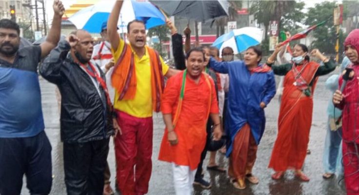 କଟକରେ ବର୍ଷାରେ ବିକ୍ଷୋଭ କଲେ ବିଜେପି କର୍ମୀ