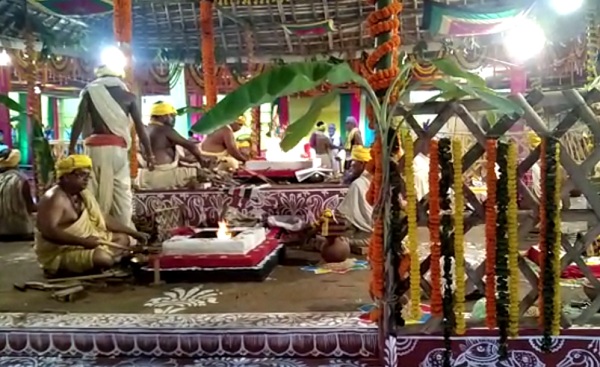 ମନ୍ତ୍ର ଧ୍ବନିରେ ଫାଟି ପଡୁଛି ଶ୍ରୀମନ୍ଦିର ଉତ୍ତର ଦ୍ଵାର ଐଶାନ୍ୟ କୋଣ। ଉତ୍ତର ପାର୍ଶ୍ବ ମଠ ସମ୍ମୁଖ ଯଜ୍ଞ ମଣ୍ଡପରେ ଶାସ୍ତ୍ର ଓ ପୁରାଣ ଶାସ୍ତ୍ର ଅନୁଯାୟୀ ପବିତ୍ର ଯଜ୍ଞ କାର୍ଯ୍ୟ ନିଷ୍ଠା ଓ ପବିତ୍ରତାର ସହ କରାଯାଇଛି। ଯଜ୍ଞ ମଣ୍ଡପ ସମ୍ମୁଖ ଭାଗରେ ଚତୁର୍ଦ୍ଧା ବିଗ୍ରହଙ୍କୁ ସୁନାବେଶରେ ସଜ୍ଜିତ କରାଯାଇ ଅତ୍ୟନ୍ତ ଧାର୍ମିକ ପରିବେଶ ମଧ୍ୟରେ ଏହି ତିନିଦିନିଆ ଯଜ୍ଞ କାର୍ଯ୍ୟ ଆରମ୍ଭ ହୋଇଥିଲା। ଯଜ୍ଞ ବେଦୀର ପରିବେଶ ତଥା ଅଙ୍ଗ ସଜ୍ଜାରେ କଳିଙ୍ଗ କଳାର ପରିପ୍ରକାଶ ଦେଖିବାକୁ ମିଳିଛି।