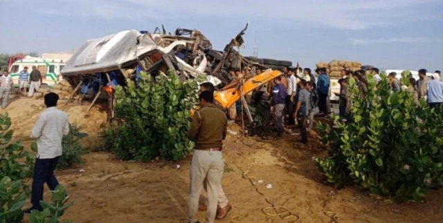 ରାଜସ୍ଥାନ() ବସ-ଟ୍ରକ ଦୁର୍ଘଟଣା ହେବା କାରଣରୁ ଘଟଣା ସ୍ଥଳରେ ୧୪ ଜଣଙ୍କ ମୃତ୍ୟୁ ହୋଇଥିବା ନେଇ ସୂଚନା ମିଳିଛି । ୧୯ ଜଣ ଆହତ ହୋଇଥିବା ମଧ୍ୟ