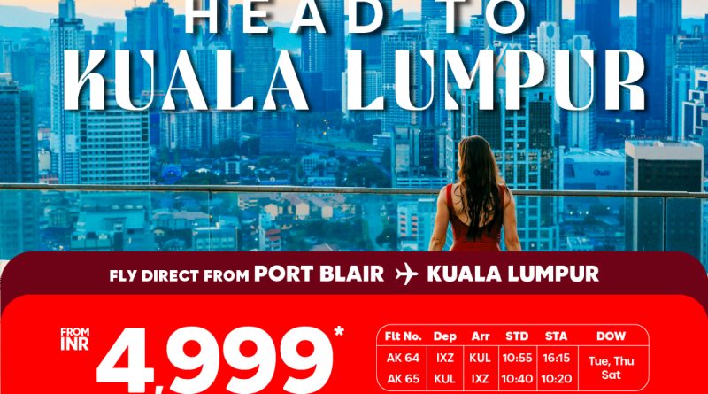 ନୂଆ ରୁଟ୍ର ଶୁଭାରମ୍ଭ ସହିତ ଏୟାର ଏସିଆ ପକ୍ଷରୁ ପୋର୍ଟ ବ୍ଲେୟାରରୁ କୁଆଲା ଲୁମ୍ପୁର ପର୍ଯ୍ୟନ୍ତ ଏକପାଖିଆ ଯାତ୍ରା ପାଇଁ ୪୯୯୯ ଟଙ୍କାର ପ୍ରମୋସନାଲ୍ ଭଡ଼ା ଘୋଷଣା କରାଯାଇଛି। ଏୟାର ଏସିଆ ମୁଭ ଆପ୍ ଓ ଏୟାରଏସିଆ ଡଟ୍ କମ୍ ୱେବସାଇଟ୍ରେ ଏହି ସ୍ୱତନ୍ତ୍ର ଭଡ଼ା ବୁକିଂ କରିହେବ। ୨୦୨୪ ନଭେମ୍ବର ୧୬ରୁ ୨୦୨୫ ଅକ୍ଟୋବର ୮ ଭିତରେ ଯାତ୍ରା କରିବା ଲାଗି ୨୦୨୪ ଅଗଷ୍ଟ ୨୫ ମଧ୍ୟରେ ଟିକଟ ବୁକିଂ କରିବାକୁ ପଡ଼ିବ। ୨୦୨୫ ଜୁନ ୩୦ ପର୍ଯ୍ୟନ୍ତ ସମସ୍ତ ଭାରତୀୟ ନାଗରିକ ମାଲେସିଆକୁ ୩୦ ଦିନ ପାଇଁ ପର୍ଯ୍ୟଟକ ହିସାବରେ ଭିସା ମୁକ୍ତ ପ୍ରବେଶ ପାଇବାକୁ ଯୋଗ୍ୟ।