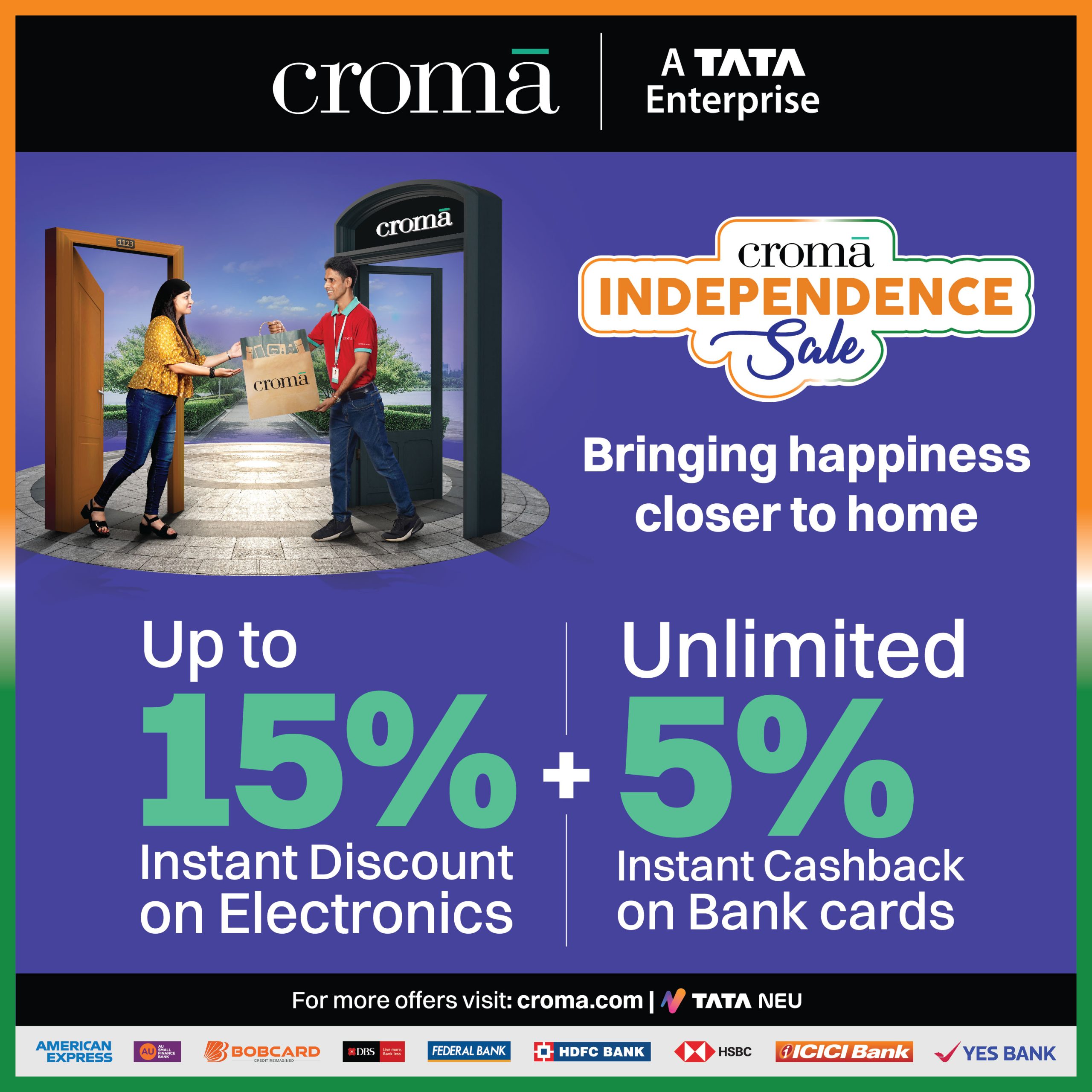 କ୍ରୋମା ପକ୍ଷରୁ ଟିଭି, ୱାସିଂ ମେସିନ ଆଦି ଉପରେ ସ୍ୱତନ୍ତ୍ର ଡିଲ୍ ସହ ସ୍ୱାଧୀନତା ସେଲ୍ର ଶୁଭାରମ୍ଭ