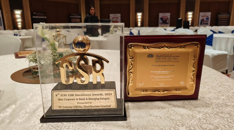 ଭୁବନେଶ୍ୱର: ଟାଟା ପାୱାର ଓ ଓଡ଼ିଶା ସରକାରଙ୍କ ଏକ ଯୌଥ ଉଦ୍ୟୋଗ ଟିପି ସେଂଟ୍ରାଲ୍ ଓଡ଼ିଶା ଡିଷ୍ଟ୍ରିବ୍ୟୁସନ ଲିମିଟେଡ୍ (ଟିପିସିଓଡିଏଲ୍)କୁ ଆଇସିଏସ୍ଆଇ ସିଏସ୍ଆର୍ ଏକ୍ସଲେନ୍ସ ଆୱାର୍ଡସ୍ ର ଅଷ୍ଟମ ସଂସ୍କରଣ ସମାରୋହରେ ‘ ଶ୍ରେଷ୍ଠ କର୍ପୋରେଟ୍-କ୍ଷୁଦ୍ର ଓ ଉଦୀୟମାନ ବର୍ଗ-୨୦୨୩ ’ ପୁରସ୍କାର ପ୍ରଦାନ କରାଯାଇଛି । ନୂଆଦିଲ୍ଲୀର ତାଜ୍ ପ୍ୟାଲେସ୍ରେ ଅନୁଷ୍ଠିତ ଏକ ଭବ୍ୟ ସମାରୋହରେ ୨୦୨୪ ଜାନୁଆରି ୫ ତାରିଖ ସନ୍ଧ୍ୟାରେ ଟିପିସିଓଡିଏଲ୍କୁ ଏହି ସମ୍ମାନଜନକ ପୁରସ୍କାର ପ୍ରଦାନ କରାଯାଇଛି ।