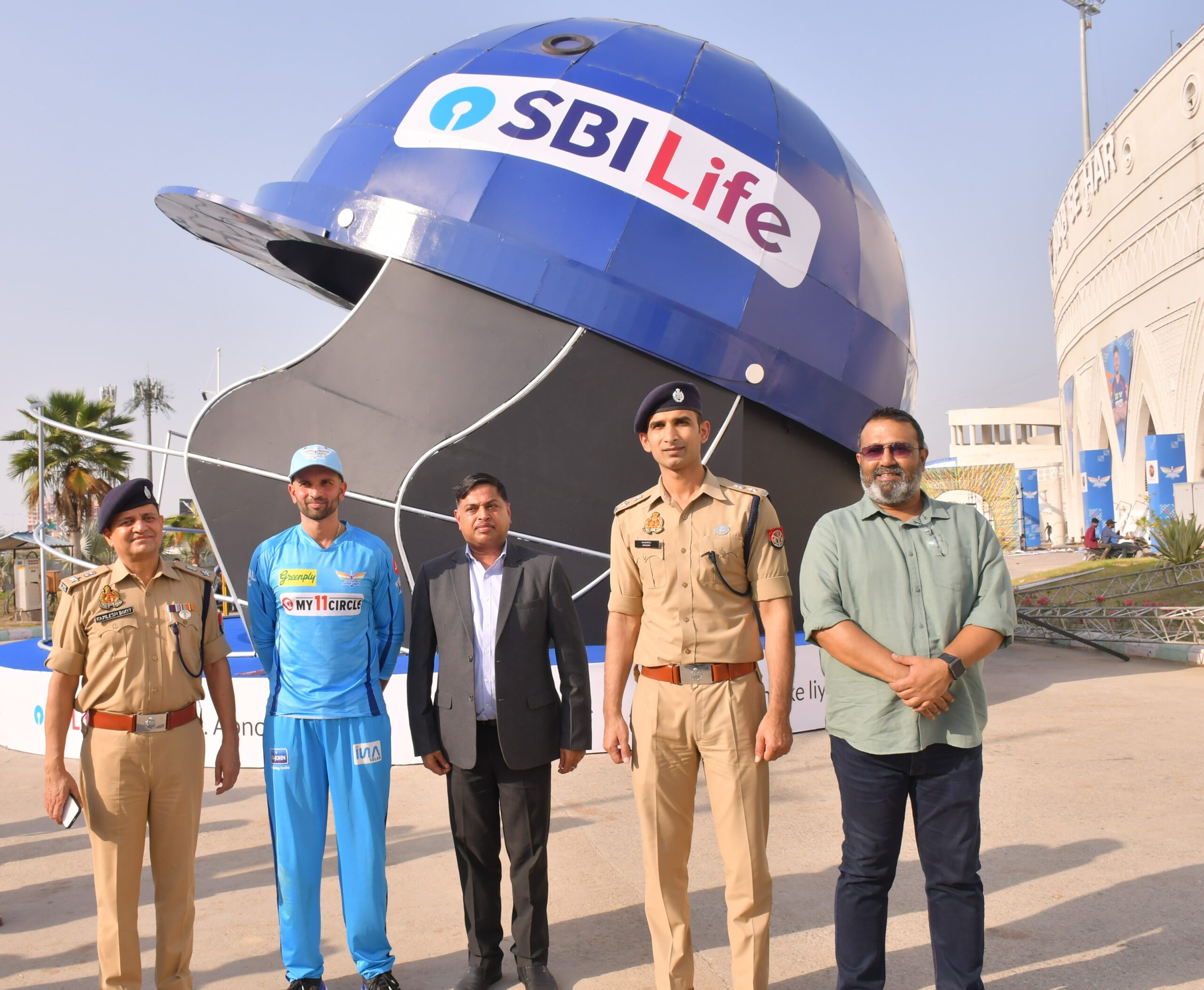 ସୁରକ୍ଷାର ବାର୍ତା ସହ ଏସ୍ବିଆଇ ଲାଇଫ୍ ଓ ଲକ୍ଷ୍ନୌ ସୁପର ଜାଏଂଟସ୍ ପକ୍ଷରୁ ଏକନା କ୍ରିକେଟ୍ ଷ୍ଟାଡିୟମ୍ରେ ବିଶାଳ ହେଲ୍ମେଟ୍ ସ୍ଥାପନ