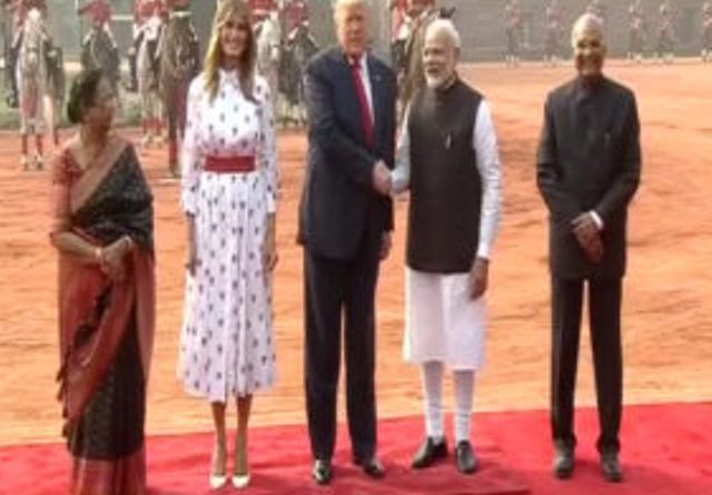 ନୂଆଦିଲ୍ଲୀ() ଆଜି ଦିଲ୍ଳୀ ରାଷ୍ଟ୍ରପତି ଭବନରେ ଆମେରିକା ରାଷ୍ଟ୍ରପତି ଡୋନାଲ୍ଡ ଟ୍ରମ୍ପଙ୍କୁ ଭବ୍ୟ ସ୍ୱାଗତ କରାଯାଇଛି ।ଟ୍ରମ୍ପଙ୍କୁ ଗାର୍ଡ ଅଫ ଅନର ଦିଆଯିବା ପରେ ଭାରତ ରାଷ୍ଟ୍ରପତି ରାମନାଥ କୋବିନ୍ଦ ଟ୍ରମ୍ପଙ୍କୁ ସ୍ୱାଗତ କରିଛନ୍ତି । ଟ୍ରମ୍ପଙ୍କ ସହ ଆସିଥିବା ପତ୍ନୀ ମେଲାନିଆ, ଝିଅ ଇଭାଙ୍କା ଓ ଅନ୍ୟ ପ୍ରତିନିଧିମାନଙ୍କୁ ସ୍ୱାଗତ କରିଛନ୍ତି ରାଷ୍ଟ୍ରପତି ରାମନାଥ କୋବିନ୍ଦ୍ ।