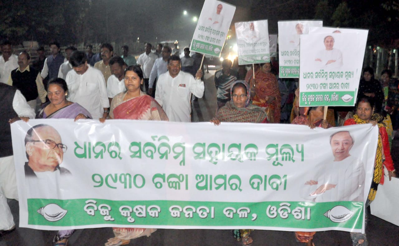 ଭୁବନେଶ୍ୱର () ଧାନର ସର୍ବନିମ୍ନ ସହାୟକ ମୂଲ୍ୟ ବୃଦ୍ଧି ଓ ଚାଷୀଙ୍କ ସ୍ୱାର୍ଥ ରକ୍ଷା ଦାବିରେ ଆଜି ବିଜୁ କୃଷକ ଜନତା ଦଳର ଦିଲ୍ଲୀ ଚଲୋ ଅଭିଯାନ ଆରମ୍ଭ ହୋଇଛି । ଜାତିର ପିତା ମହାତ୍ମା ଗାନ୍ଧୀଙ୍କ ପ୍ରତିମୂର୍ତ୍ତିରେ ପୁଷ୍ପମାଲ୍ୟ ଅର୍ପଣ କରି ଅହିଂସାର ବାର୍ତ୍ତା ନେଇ ଦିଲ୍ଲୀ ଅଭିମୁଖେ ଯାତ୍ରା କରିଛନ୍ତି ହଜାର ହଜାର ଚାଷୀ ।