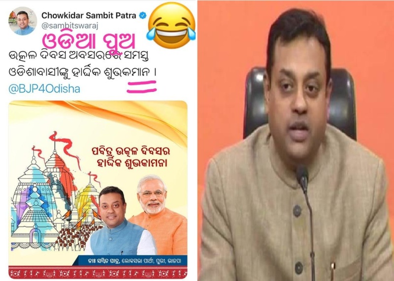 ପୁରୀରୁ ଲୋକସଭା ପ୍ରାର୍ଥୀ ହୋଇଥିବା ବିଜେପି ନେତା ସମ୍ବିତ ପାତ୍ର ଉତ୍କଳ ଦିବସ ଅବସରରେ ସୋସିଆଲ ମିଡିଆରେ ଉତ୍କଳ ଦିବସର ଶୁଭେଚ୍ଛା ଜଣାଛନ୍ତି । ହେଲେ ଓଡିଆରେ ପଣ୍ଡିତ ଏହି ନେତାଙ୍କ ଓଡିଆ ଜ୍ଞାନ ଟିକେ ଦେଖନ୍ତୁ । ଶୁଭକାମନାକୁ ଶୁଭକମାନା ବୋଲି ଲେଖିଛନ୍ତି । ଶୁଭକାମନା ଓ ଶୁଭକମାନା ମଧ୍ୟରେ ଫରକ ଜାଣିପାରୁନଥିବା ନେତା କୁଆଡେ ପୁରୀ ଭଳି ଏକ ଧର୍ମୀୟ ନିର୍ବାଚନମଣ୍ଡଳୀରୁ ପ୍ରାର୍ଥୀ ହୋଇଛନ୍ତି ବୋଲି ବିଜେଡି କଟାକ୍ଷ କରିଛି ।