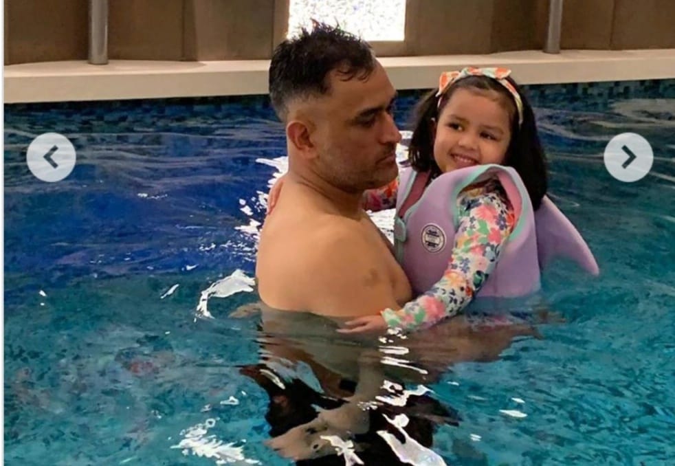 ଝିଅ ଜିଭା ସହ ସୁଇମିଂପୁଲରେ ଧୋନି, ଭାଇରାଲ ହେଲା ଫଟୋ