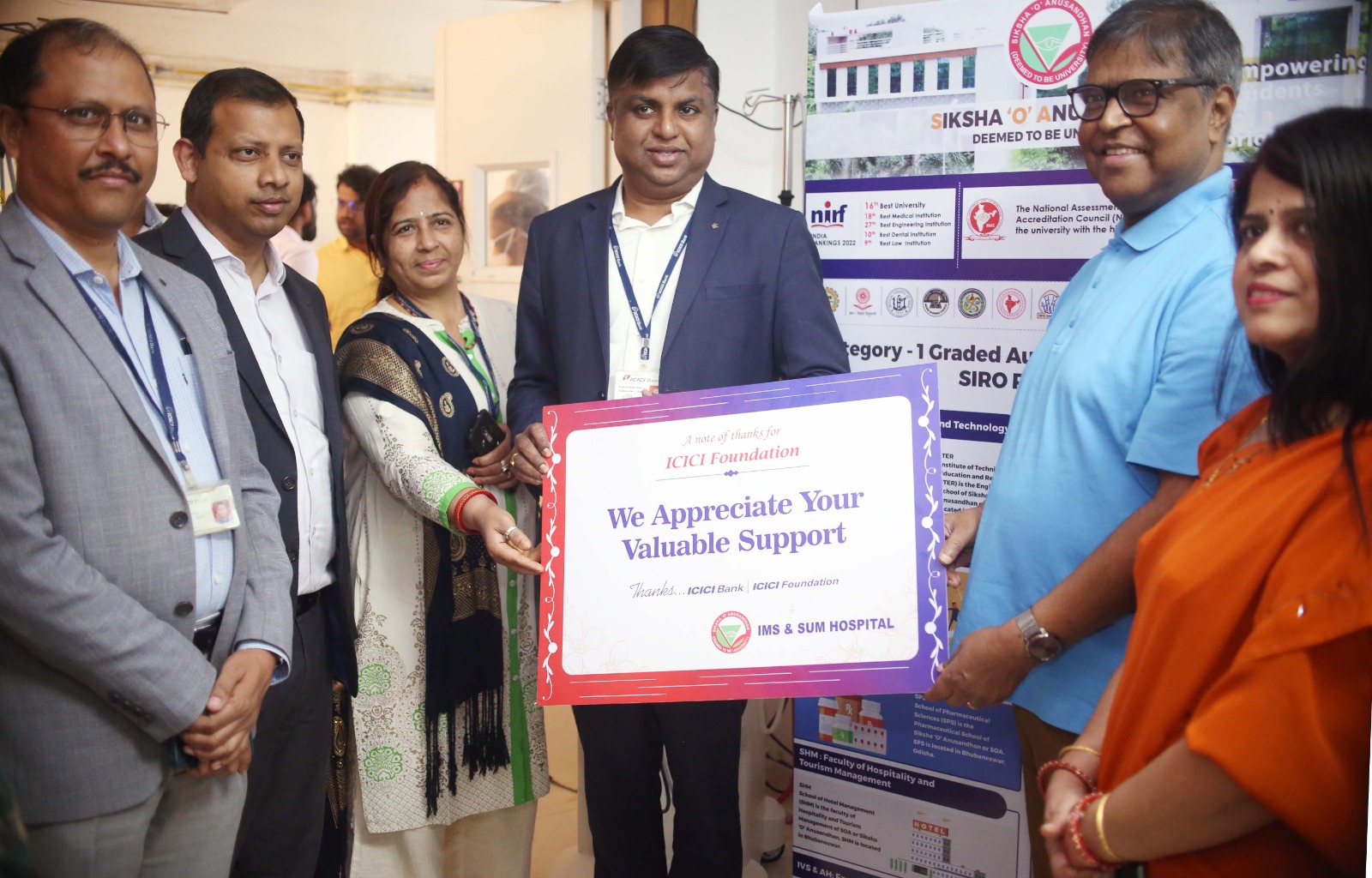 ଆଇସିଆଇସିଆଇ ବ୍ୟାଙ୍କ ଏବଂ ଆଇସିଆଇସିଆଇ ଫାଉଣ୍ଡେସନ୍ ସର୍ବଦା ସ୍ୱାସ୍ଥ୍ୟ ସେବା କ୍ଷେତ୍ରରେ ଉଚ୍ଚକୋଟୀର କାର୍ଯ୍ୟ କରୁଛନ୍ତି । କୋଭିଡ ସମୟରେ ମଧ୍ୟ ଆଇଏମଏସ୍ ଆଣ୍ଡ ସମ୍ ହସ୍ପିଟାଲ୍‌କୁ ଏହି ଅନୁଷ୍ଠାନ ଅନେକ ସହଯୋଗ କରିଥିଲେ ବୋଲି ପ୍ରଫେସର ନାୟକ କହିଥିଲେ।