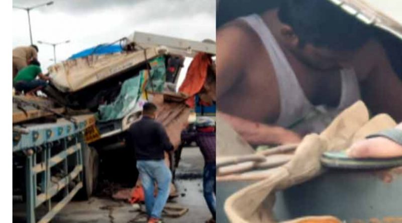 ଭୁବନେଶ୍ୱର() ଭୁବନେଶ୍ୱର ବରମୁଣ୍ଡା ଓଭରବ୍ରିଜ୍ ଉପରେ ଆଜି ଏକ ମର୍ମନ୍ତୁଦ ଦୁର୍ଘଟଣା ଘଟିଛି। ଏକ ଟ୍ରେଲରକୁ ପଛପଟୁ ଧକ୍କା ଦେଇଛି ମାଲ ବୋଝେଇ ଟ୍ରକ। ଦୁର୍ଘଟଣା ପରେ କ୍ୟାବିନ ଭିତରେ ଚାପି ହୋଇଯାଇଛନ୍ତି ଡ୍ରାଇଭର। ଗୁରୁତର ଡ୍ରାଇଭରଙ୍କୁ ଉଦ୍ଧାର ପାଇଁ ଅଗ୍ନିଶମ କର୍ମଚାରୀ ଉଦ୍ୟମ ଜାରି ରଖିଛନ୍ତି। ତେବେ ଡ୍ରାଇଭର ଜଣକ ଫସିଯାଇଥିବାରୁ ତାଙ୍କୁ ସହଜରେ ଉଦ୍ଧାର କରିବା ସମ୍ଭବ ହୋଇପାରୁନି। ତେଣୁ ଟ୍ରକର ଝରକା କଟାଯାଇ ଉଦ୍ଧାର କାର୍ଯ୍ୟ ଜାରି ରହିଛି।