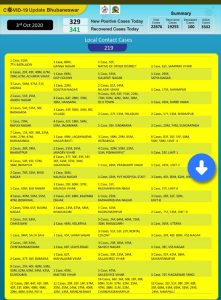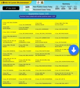 ଭୁବନେଶ୍ବର() ଆଜି ବି ଭୁବନେଶ୍ୱରରୁ ୩୨୯କରୋନା ଆକ୍ରାନ୍ତ ଚିହ୍ନଟ ହୋଇଛନ୍ତିି । ସେମାନଙ୍କ ମଧ୍ୟରୁ କ୍ୱାରେଣ୍ଟାଇନ ସେଣ୍ଟରରୁ ୧୧୦ ଓ ସ୍ଥାନୀୟ ଅଞ୍ଚଳରୁ ୨୧୯ଜଣ ଚିହ୍ନଟ ହୋଇଛନ୍ତି । ଏହାସହ ଆଜି ୩୪୧ ଜଣ ସୁସ୍ଥ ମଧ୍ୟ ହୋଇଛନ୍ତି । ଭୁବନେଶ୍ୱରରେ କରୋନା ପଜିଟିଭଙ୍କ ସଂଖ୍ୟା ୨୨ ହଜାର ୮୭୬ କୁ ବୃଦ୍ଧି ପାଇଛି ।