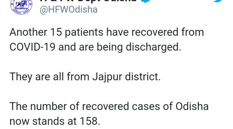 ଆଉ ୧୫କରୋନା ଆକ୍ରାନ୍ତ ସୁସ୍ଥ