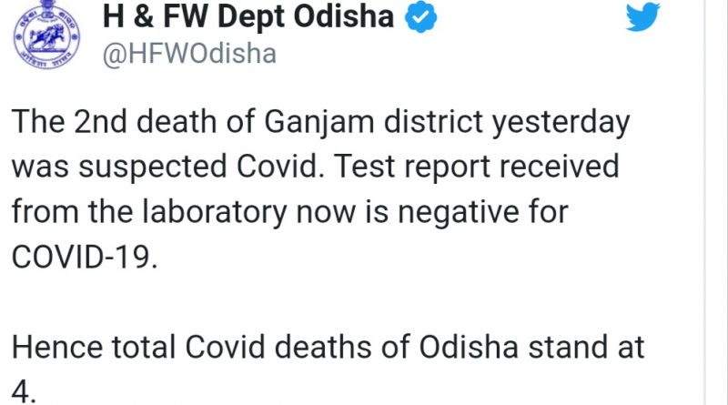 ଗଞ୍ଜାମରେ ମୃତ୍ୟୁ ହୋଇଥିବା ୨ଜଣଙ୍କ ମଧ୍ୟରୁ ଜଣଙ୍କର ନମୁନା ରିପୋର୍ଟ ନେଗଟିଭ