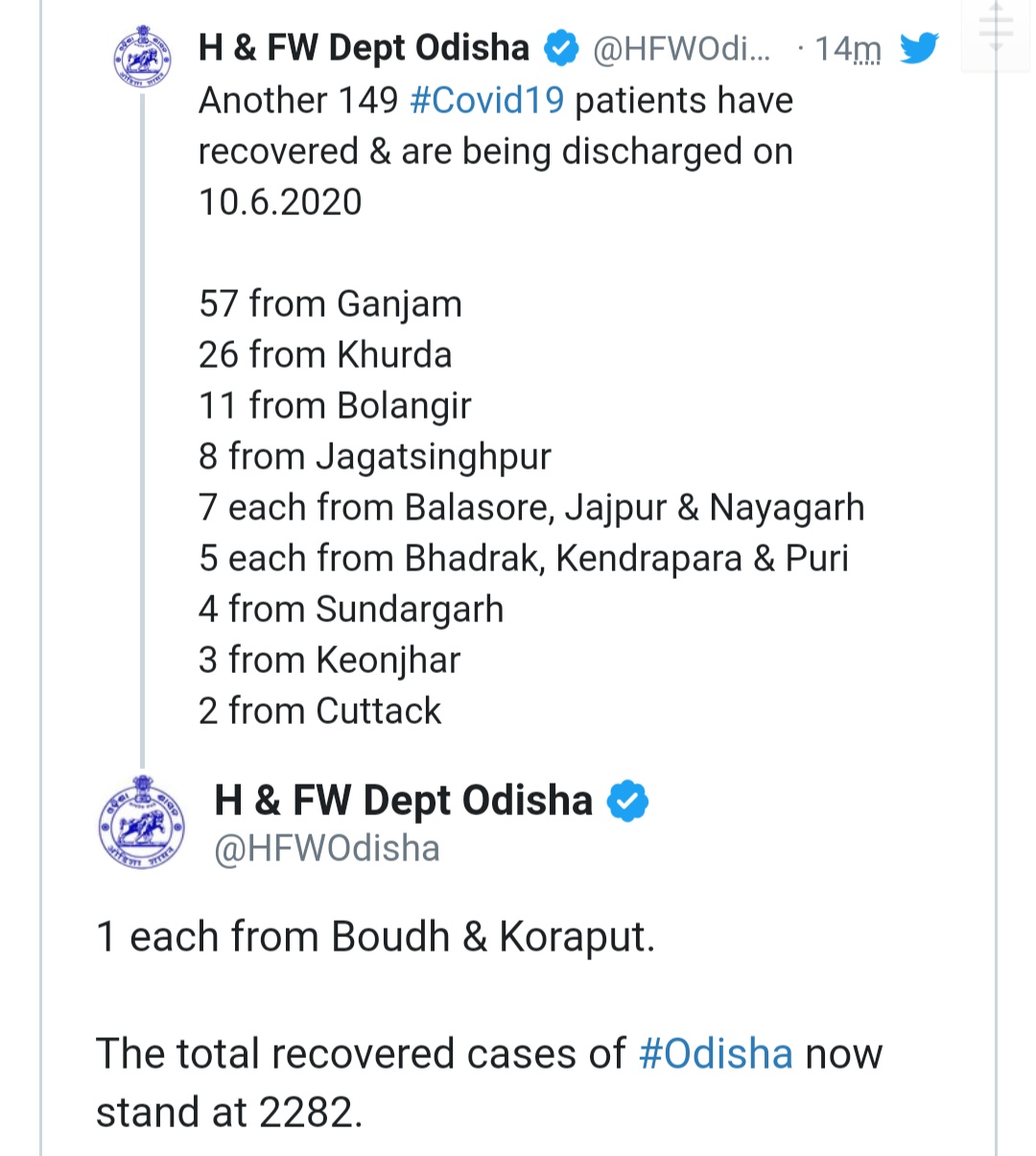 ରାଜ୍ୟରେ ଆଉ ୧୪୯ କରୋନା ଆକ୍ରାନ୍ତ ସୁସ୍ଥ