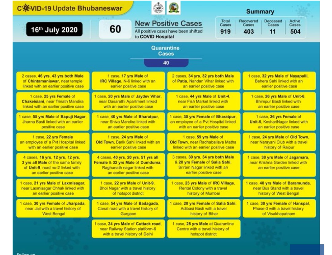 ଭୁବନେଶ୍ବରରୁ ଆଉ ୬୦ ପଜିଟିଭ