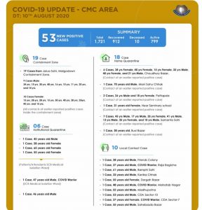 ସ୍ଥାନୀୟ ସଂକ୍ରମିତ ହେଲେ ଫ୍ରେଣ୍ଡସ୍ କଲୋନୀର ୨୮ ବର୍ଷୀୟ ଯୁବକ, ରାଜା ବଗିଚାର ୩୭ ବର୍ଷୀୟ କରୋନା ଯୋଦ୍ଧା, ବାମ୍ଫି ସାହିର ୬୧ ବର୍ଷୀୟ ବୃଦ୍ଧ, କନିକା ଛକର ୩୩ ବର୍ଷୀୟ ଯୁବକ, ଦରଘା ବଜାରର ୫୫ ବର୍ଷୀୟା ମହିଳା, ମହତାବ ନଗରର ୪୮ ବର୍ଷୀୟ କରୋନା ଯୋଦ୍ଧା, ମଧୂପାଟମାର ୫୨ ବର୍ଷୀୟ ବ୍ୟକ୍ତି, ସିଡିଏ ସେକ୍ଟର ୧୦ର ୫୩ ବର୍ଷୀୟ ବ୍ୟକ୍ତି, ସେକ୍ଟର ୭ର ୩୭ ବର୍ଷୀୟ କରୋନା ଯୋଦ୍ଧା ଓ ସେହେବଜାଦା ବଜାରର ୫୫ ବର୍ଷୀୟ ବ୍ୟକ୍ତି ।