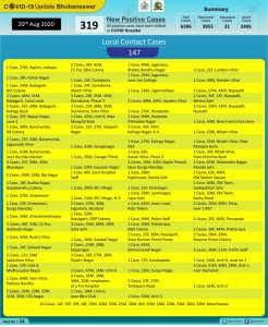ଭୁବନେଶ୍ବର() ଭୁବନେଶ୍ୱରରୁ ୩୧୯ କରୋନା ଆକ୍ରାନ୍ତ ଚିହ୍ନଟ ହୋଇଛନ୍ତିି । ସେମାନଙ୍କ ମଧ୍ୟରୁ କ୍ୱାରେଣ୍ଟାଇନ ସେଣ୍ଟରରୁ ୧୭୨ ଓ ସ୍ଥାନୀୟ ଅଞ୍ଚଳରୁ ୧୪୭ଜଣ ଚିହ୍ନଟ ହୋଇଛନ୍ତି । ଏହାସହ ଆଜି ୧୧୩ ଜଣ ସୁସ୍ଥ ମଧ୍ୟ ହୋଇଛନ୍ତି । ଏନେଇ ବିଏମସି ପକ୍ଷରୁ ସୂଚନା ମିଳିଛି ।