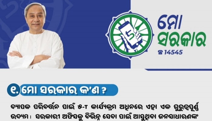 ୨୦୨୦ ମାର୍ଚ୍ଚ ୫ତାରିଖରୁ ରାଜ୍ୟ ସରକାର ନିଜର ସମସ୍ତ ବିଭାଗରେ ମୋ ସରକାର କାର୍ଯ୍ୟକ୍ରମ ଲାଗୁ କରିବେୟ ସରକାରଙ୍କ ବିଭିନ୍ନ ବିଭାଗର କାର୍ଯ୍ୟ ଓ ସେବା ସମ୍ପର୍କରେ ଟୋଲ ଫ୍ରି ନମ୍ବର ୧୪୫୪୫କୁ ଫୋନ୍ କରି ଯେକେହି ନିଜର ଅଭିଯୋଗ କିମ୍ବା ପରାମର୍ଶ ଦେଇପାରିବେ । ତେବେ ଏହା ଅଭିଯୋଗ ଶୁଣାଣୀ ପ୍ଲାଟଫର୍ମ ନୁହେଁ ବରଂ ସରକାରୀ ସଂସ୍ଥାଗୁଡ଼ିକ ସମ୍ପର୍କରେ ମତାମତ ସଂଗ୍ରହ ପାଇଁ ଏକ ବ୍ୟବସ୍ଥା । ଯେଭଳି ହୋଟେଲ କିମ୍ବା ସେବା ପ୍ରଦାନକାରୀ କମ୍ପାନୀମାନେ ଲୋକଙ୍କ ମତାମତ ନେଇ ନିଜ ବ୍ୟବସ୍ଥାରେ ସୁଧାର ଆଣିଥାନ୍ତି, ଠିକ ସେହିଭଳି ଜନସାଧାରଣଙ୍କ ମତାମତରେ ସରକାରୀ ସେବା ପ୍ରଦାନକାରୀ ଅନୁଷ୍ଠାରେ ସଂସ୍କାର ସହ ବ୍ୟବସ୍ଥିତ କରାଯିବ ।