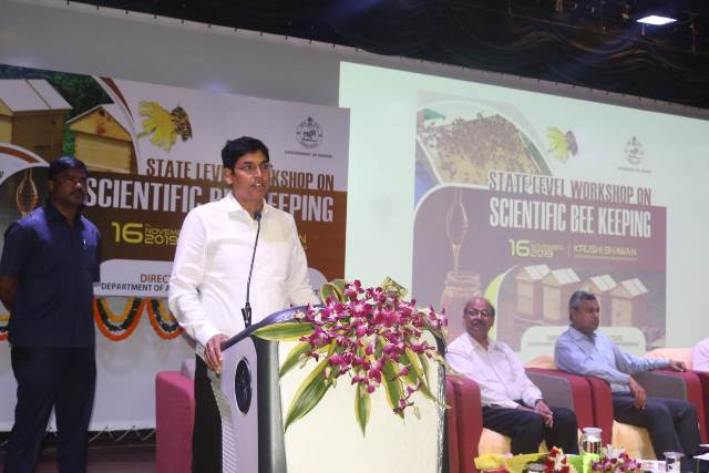 ଅନ୍ୟପଟେ କର୍ମଶାଳାରେ ସମ୍ମାନିତ ଅତିଥି ଭାବେ ଯୋଗଦେଇ ଶିଳ୍ପ,ଅଣୁ,କ୍ଷୁଦ୍ର ଓ ମଧ୍ୟମ ଉଦ୍ୟୋଗ,ଶକ୍ତି,ଗୃହ ମନ୍ତ୍ରୀ କ୍ୟାପଟେନ ଦିବ୍ୟଶଙ୍କର ମିଶ୍ର କହିଲେ ଆଦିମ କାଳରୁ ମହୁ ସଂଗ୍ରହ କାରିବାର ପରାମ୍ପରା ରହିଥିବା ବେଳେ ମହୁ ଉପôାଦନ ଓ ବୃଦ୍ଧି ନିମନ୍ତେ ବୈଜ୍ଞାନିକ ପଦ୍ଧତିରେ ମହୁମାଛି ପାଳନ କରାଗଲେ ଓଡିଶାର ଅର୍ଥାନୈତିକ ଅଭିବୃଦ୍ଧିରେ ସହାୟକ ହୋଇପାରିବ ।