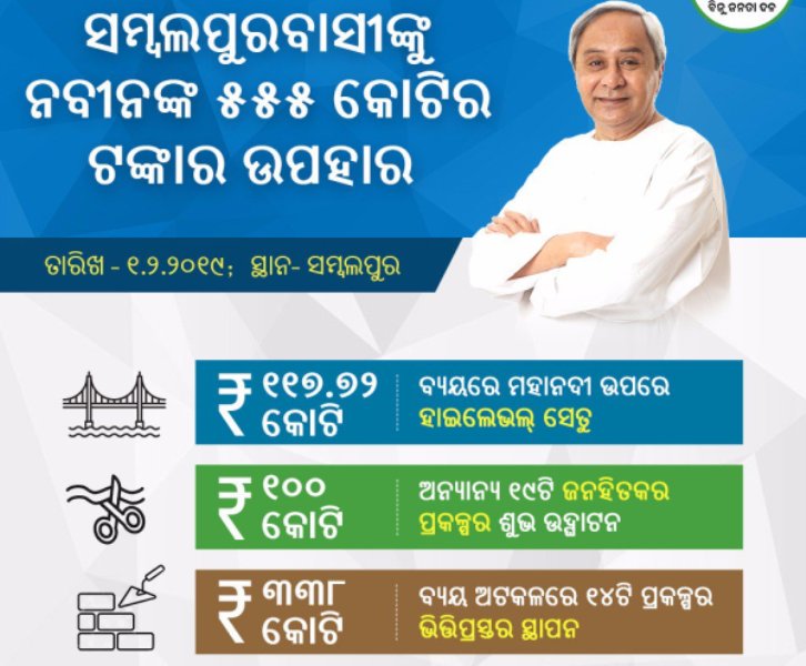 ସମ୍ବଲପୁରବାସୀଙ୍କୁ ନବୀନଙ୍କ 555 କୋଟି ଟଙ୍କାର ଉପହାର