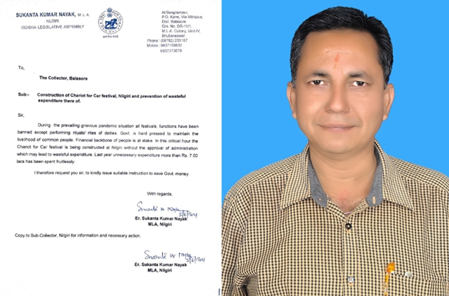 ଏଭଳି ଏକ ଜଟିଳ ସମୟରେ ପ୍ରଶାସନର ବିନା ଅନୁମତିରେ ନୀଳଗିରିରେ ରଥ ନିର୍ମାଣ କରାଯାଇ ଅଯଥା ଖର୍ଚ୍ଚ କରାଯାଉଛି। ପୂର୍ବବର୍ଷ ମଧ୍ୟ ରଥ ନିର୍ମାଣ କରାଯାଇ ୭ଲକ୍ଷ ଟଙ୍କା ଖର୍ଚ୍ଚ ହୋଇଥିଲା ଏବଂ ଚଳିତବର୍ଷ ଅନୁରୂପଭାବେ ସେମିତି କରାନଯାଇ ସରକାରୀ ଅର୍ଥକୁ ସଞ୍ଜୟ ରଖିବାକୁ ବିଧାୟକ ଶ୍ରୀ ନାୟକ ଜିଲାପାଳଙ୍କୁ ଜଣାଇଛନ୍ତି।