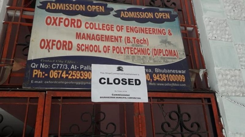 ଭୁବନେଶ୍ୱର: ରାଜ୍ୟରେ ବଢୁଛି କରୋନା ସଂକ୍ରମଣ । ଧିରେ ଧିରେ ବୃଦ୍ଧି ପାଉଛି ସଂକ୍ରମିତଙ୍କ ସଂଖ୍ୟା । ରାଜଧାନୀରେ ଥିବା ବିଭିନ୍ନ ଶିକ୍ଷାନୁଷ୍ଠାନରେ କୋଭିଡ୍ ନିୟମ ଉଲଂଘନ ଅଭିଯୋଗ ହେଉଛି । ଫଳରେ ସେମାନଙ୍କ ଉପରେ ଭୁବନେଶ୍ବର ମହାନଗର ନିଗମ ପକ୍ଷରୁ କଡା ନଜର ରଖାଯାଇଛି । ତେବେ ଆଜି ରାଜଧାନୀ ଉପକଣ୍ଠ ପଳାସପଲ୍ଲୀରେ ଥିବା ଅକ୍ସଫୋର୍ଡ କଲେଜ ଅଫ ଇଂଜିନିୟରିଂ ଆଣ୍ଡ ମ୍ୟାନେଜମେଣ୍ଟକୁ ବନ୍ଦ କରିଛି ବିଏମସି । କୋଭିଡ ଗାଇଡ ଲାଇନକୁ ଅକ୍ସଫୋର୍ଡ ଇଂଜିନିୟରିଂ କଲେଜରେ ଖୋଲାଖୋଲି ଉଲ୍ଲଂଘନ ଅଭିଯୋଗରେ ଶିକ୍ଷାନୁଷ୍ଠାନକୁ ବନ୍ଦ କରିଛି ଜୋନାଲ ଏନଫୋର୍ସମେଣ୍ଟ ଟିମ୍ ।