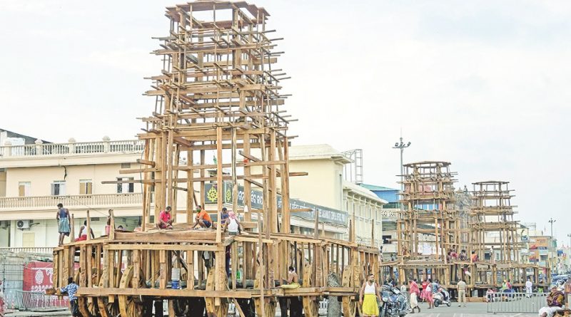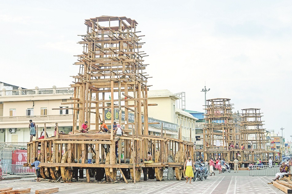 ପୁରୀ: ଶୁକ୍ରବାର ତାଗ ବାଡ଼ିଆ ସରି ପଟା ଫିଟିଂ ଆରମ୍ଭ ହୋଇଛି । ଶନିବାର ଦିନ ରଥରେ କଇଁଚି ବାଡ଼ିଆ ସହ ରଥଖଳାରେ ବିଶ୍ୱକର୍ମାମାନେ ରଥର କଳସ ତିଆରୁଛନ୍ତି । ଚିତ୍ରକର ସେବକମାନେ ପାଶ୍ୱର୍ ଦେବାଦେବୀଙ୍କୁ ସଫା କରି ରଥ ରଙ୍ଗ କରିବାକୁ ପ୍ରସ୍ତୁତି ଆରମ୍ଭ କରିଛନ୍ତି ।