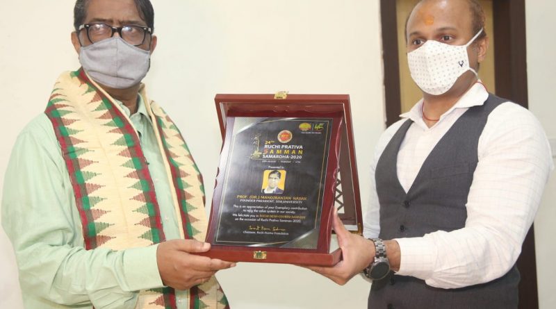 ଗୁରୁବାର ଦିନ ରୁଚି ପକ୍ଷରୁ ସ୍ୱତନ୍ତ୍ର ରୁଚି ପ୍ରତିଭା ସମ୍ମାନ ସମାରୋହ – ୨୦୨୦ ଭର୍ଚୁଆଲ୍ ଜୁମ୍୍ ୱେବିନାର୍ ମାଧ୍ୟମରେ ଆୟୋଜନ କରାଯାଇଥିଲା । ଏହି କାର୍ଯ୍ୟକ୍ରମରେ ପ୍ରଫେସର ନାୟକଙ୍କୁ ଏହି ସ୍ୱତନ୍ତ୍ର ସମ୍ମାନ ପ୍ରଦାନ କରାଯାଇଛି । କାର୍ଯ୍ୟକ୍ରମ ପୂର୍ବରୁ ରୁଚିର ଅଧ୍ୟକ୍ଷ ଶ୍ରୀ ଶରତ କୁମାର ସାହୁ ଏବଂ ଅନ୍ୟ ବରିଷ୍ଠ କର୍ମକର୍ତାମାନେ ପ୍ରଫେସର ନାୟକଙ୍କୁ ସ୍ୱତନ୍ତ୍ର ଭାବେ ଭେଟି ସମ୍ବର୍ଦ୍ଧିତ କରିଥିଲେ ।