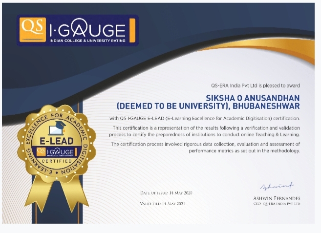 ଭୁବନେଶ୍ୱର () କରୋନା ମହାମାରୀର ଘୋର ପ୍ରଭାବ ଶିକ୍ଷା କ୍ଷେତ୍ରରେ ପଡ଼ିଥିବାବେଳେ ଇ-ଲର୍ଣ୍ଣିଂ ଏବଂ ଅନଲାଇନ ଶିକ୍ଷାଦାନ କ୍ଷେତ୍ରରେ ଉତ୍କର୍ଷତା ନିମନ୍ତେ ସ୍ଥାନୀୟ ଶିକ୍ଷା ଓ ଅନୁସନ୍ଧାନ (ଡିମ୍ଡ ଟୁ ବି ୟୁନିଭର୍ସିଟି) ପୂର୍ବ ଭାରତରେ ଏକମାତ୍ର ବିଶ୍ୱବିଦ୍ୟାଳୟ ଭାବେ କ୍ୟୁଏସ୍ ଆଇଗଜ ଦ୍ୱାରା ପ୍ରଦତ ଇ-ଲର୍ଣ୍ଣିଂ ଏକ୍ସିଲେନ୍ସ ଫର ଏକାଡେମିକ ଡିଜିଟାଇଜେସନ