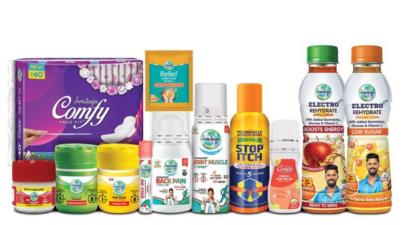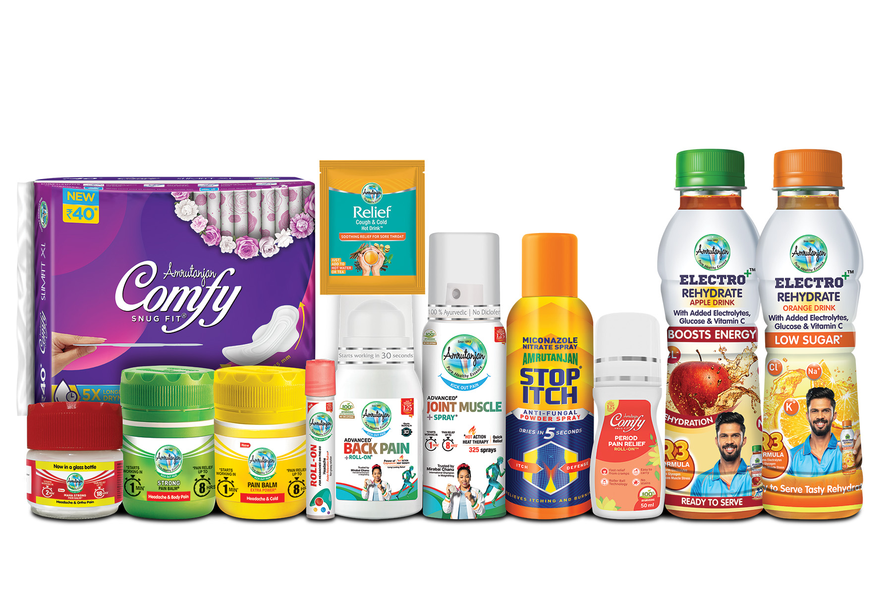ଅମୃତାଞ୍ଜନ ହେଲ୍‌ଥକେୟାରର ବିବିଧ ଉତ୍ପାଦ ବର୍ଗମାଳା ରହିଛି । ବିଜ୍ଞାନ ଓ ଆୟୁର୍ବେଦର ସମିଶ୍ରଣରେ କ୍ଲିନିକାଲ୍ ପରୀକ୍ଷଣ ସହ କମ୍ପାନି ପ୍ରଭାବଶାଳୀ ରିଲିଫ୍ ପ୍ରଦାନ କରୁଛି । ଅମୃତାଞ୍ଜନର ସଫଳତାର ମୂଳଦୁଆ ହେଉଛି ନବସୃଜନ । କମ୍ପାନି ପକ୍ଷରୁ ରୋଲ୍‌-ଅନ୍ ପେନ୍ ରିଲିଫ୍ ଓ ହାଇଡ୍ରୋଜେଲ୍ ପେନ୍ ପ୍ୟାଚ୍ ଭଳି ଉତ୍ପାଦର ଶୁଭାରମ୍ଭ କରିଛି ।