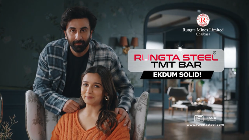 ଏହି ବିଜ୍ଞାପନରେ ବଲିଉଡ ତାରକା ଆଲିଆ ଭଟ୍ଟ ଓ ରଣବୀର କପୁର ଅଭିନୟ କରିଥିବା ବେଳେ ଏଥିରେ ରଣବୀରଙ୍କ ସହ ନିଜ ସମ୍ପର୍କର ଗୁରୁତ୍ୱପୂର୍ଣ୍ଣ ଦିଗ ବିଷୟରେ ଆଲିଆ ଆଲୋଚନା କରୁଛନ୍ତି ଏବଂ ରଣବୀର ରୁଙ୍ଗଟା ଷ୍ଟିଲ୍ ଟିଏମ୍‌ଟି ବାର୍‌ର ଦୀର୍ଘ ସ୍ଥାୟିତ୍ୱ, ଦୃଢ଼ତା, ଧକ୍କା ସହନଶୀଳତା ଶକ୍ତି ଏବଂ ନିଜ ପାଶ୍ୱର୍ରେ ସବୁ ବେଳେ ରହିବା ବିଷୟରେ ଆଲୋଚନା କରିଛନ୍ତି । ରୁଙ୍ଗଟା ଷ୍ଟିଲ୍ ଟିଏମ୍‌ଟି ବାର୍‌ର ଉପସ୍ଥିତିରେ ‘ଏକ୍‌ଦମ୍ ସଲିଡ୍‌’ ଟ୍ୟାଗ୍‌ଲାଇନ୍ ସହ ଏହି ଟିଭିସି ଶେଷ ହେଉଛି ।